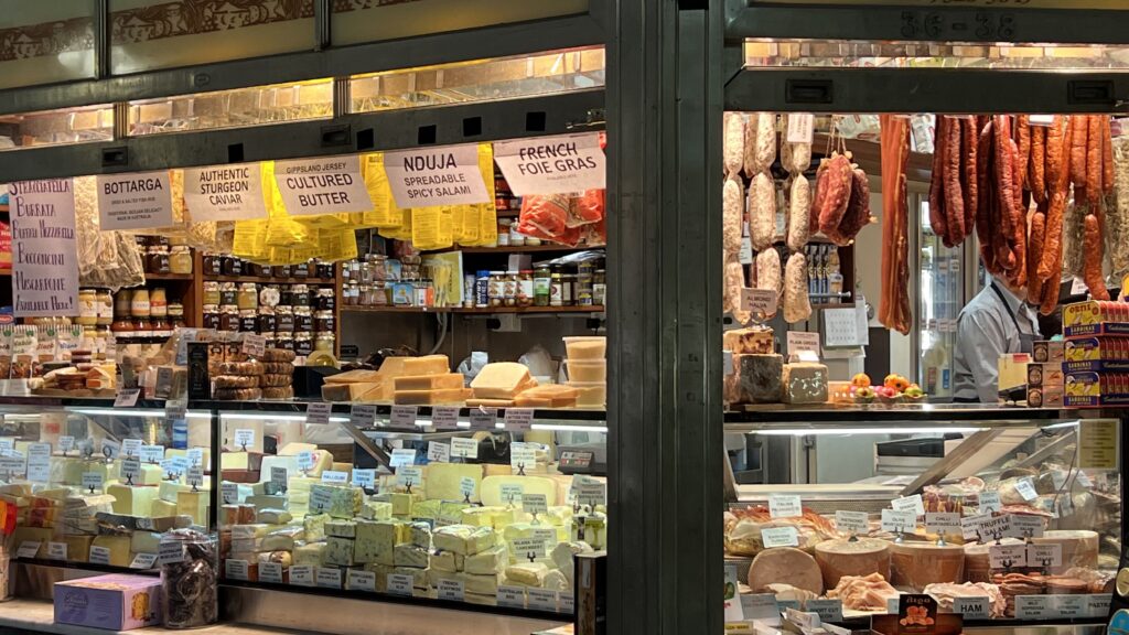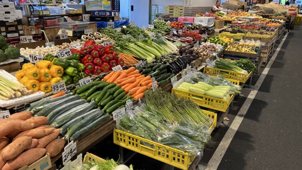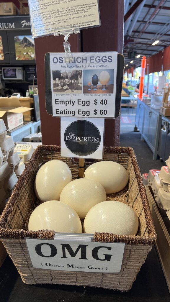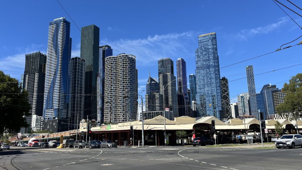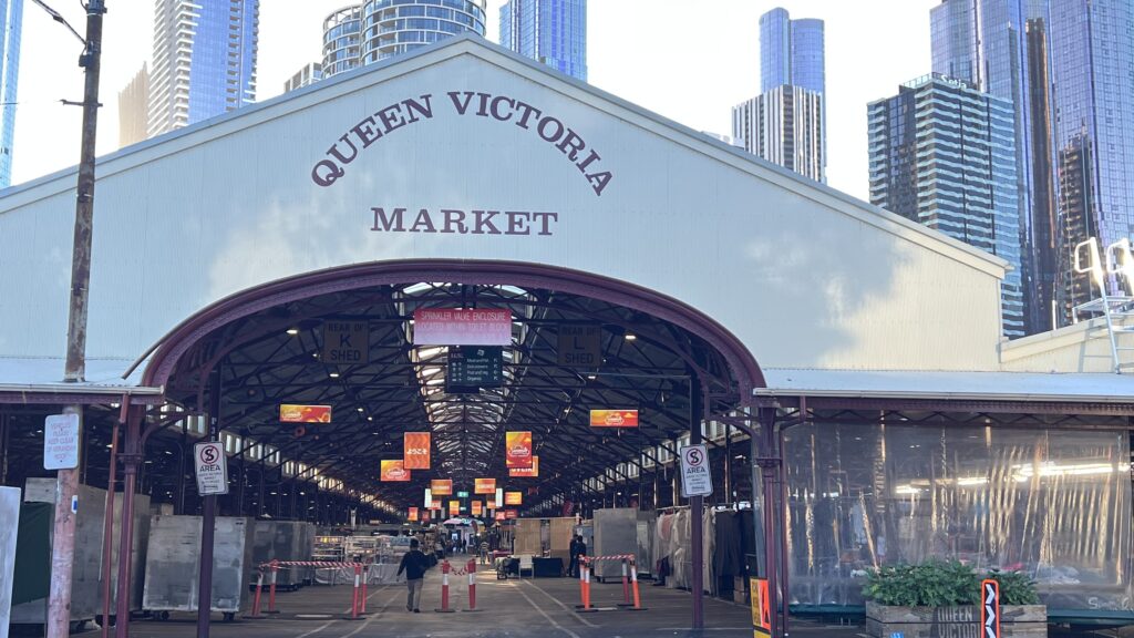 Unser erstes Ziel an diesem Tag ist der seit dem 19. Jahrhundert bestehende Queen Victoria Market, DER große Markt in Melbourne und einer der größten der Südhalbkugel. Das etwa 70.000 Quadratmeter große Gelände ist mittlerweile dicht umrahmt von den Wolkenkratzern des zentralen Geschäftsviertels.