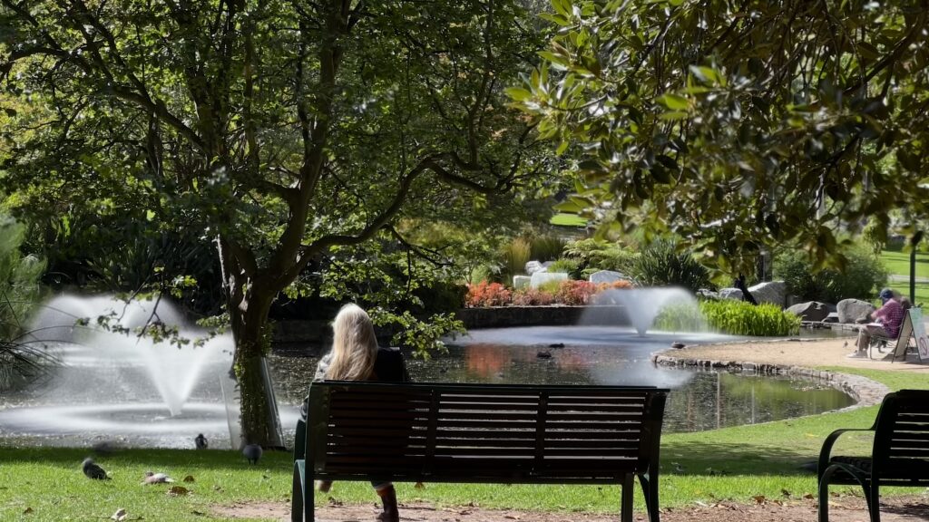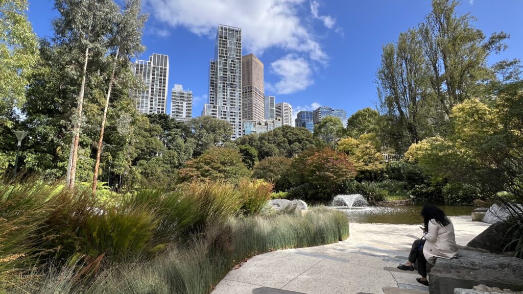 Die beiden Parks Treasury und Fitzroy Gardens sind wohltuende grüne Lungen im Brausen der Großstadt, die eine oder andere Bank bietet sich an für die Mittagspause.