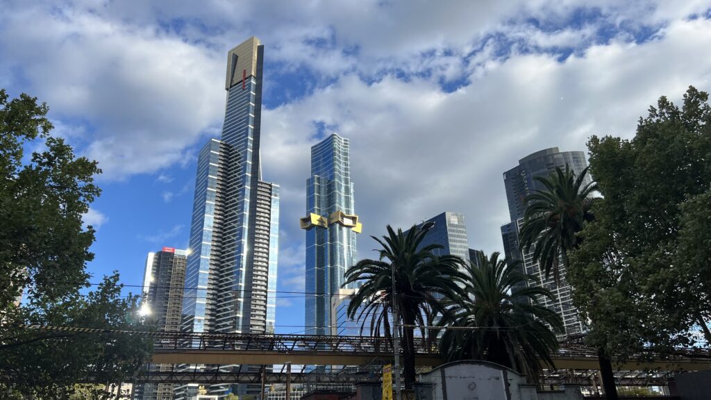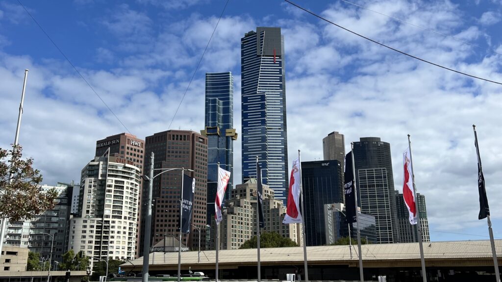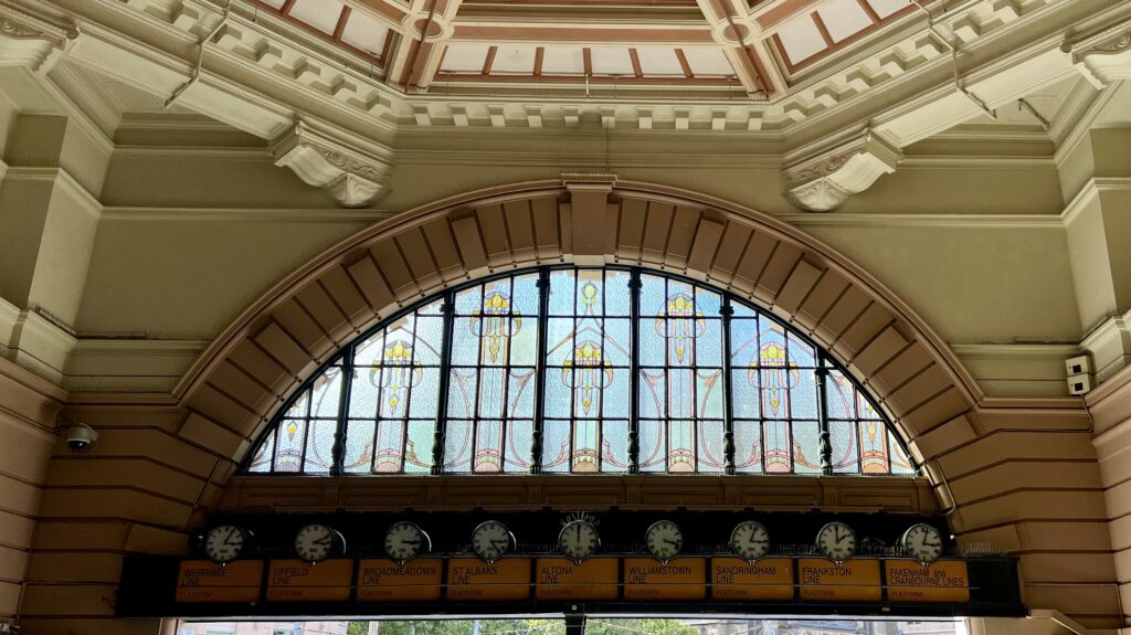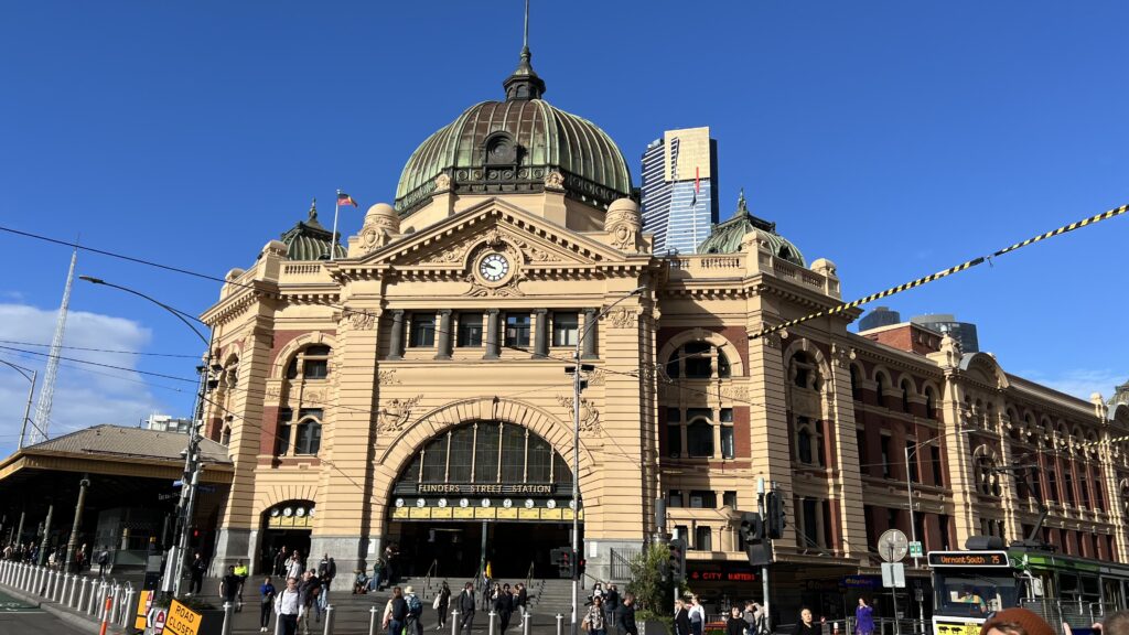 Gegenüber der Flinders Street Station, dem historischen Bahnhofsgebäude von 1910,
