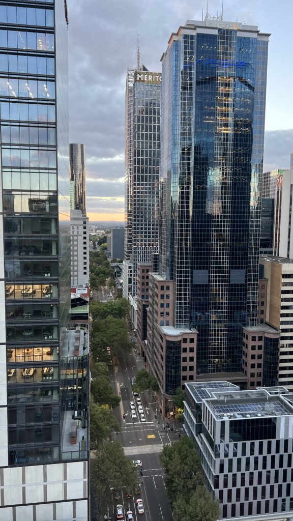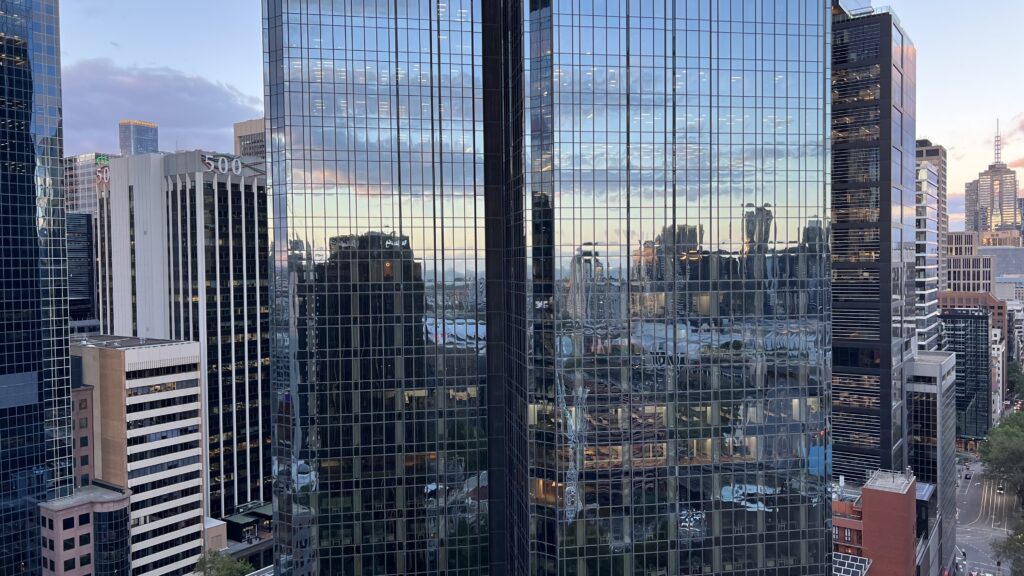 Am Abend schimmern manche der verspiegelten Hochhausfassaden besonders schön im Sonnenlicht… das überdeckt ein wenig all die Hektik, die viele Armut und das ständige Brausen der Großstadt.