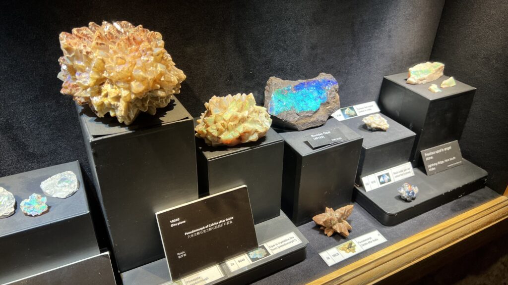 Im Untergeschoss eines Geschäftshauses in der Swanston Street befindet sich eine Niederlassung der National Opal Collection. Wir bewundern die Farbenpracht verschiedener besonders schöner und wertvoller Opale, eines Nationalsymbols von Australien.