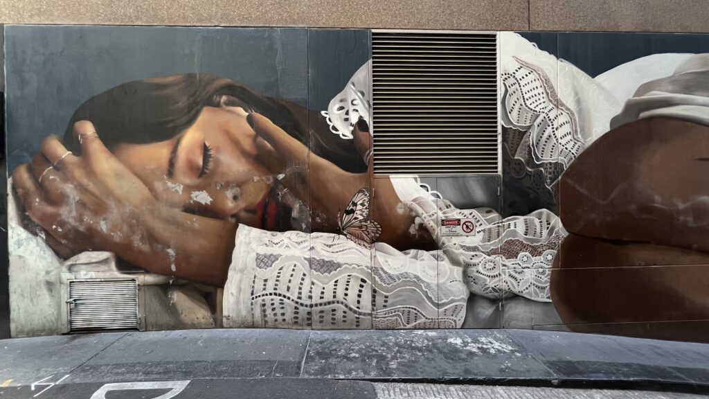Dass Melbourne auch bekannt ist für seine Streetart, bekommt man an vielen Stellen gezeigt. Einige davon sind sehr populär und werden sowohl mit lautem Geschnatter von begeisterten chinesischen Touristen abgelichtet als auch von mässig interessierten australischen Schulklassen (im Rahmen ihres Kunstunterrichtes?) besucht.