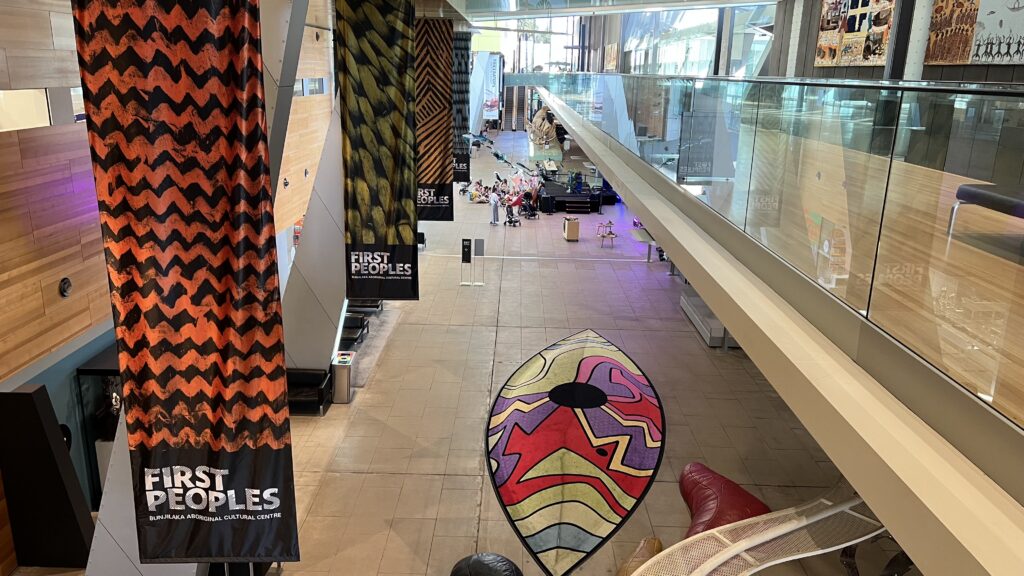 Das Museum hat uns, nun ja, ehrlich gesagt, ziemlich enttäuscht. Ein wildes Mischmasch aus Heimatkunde, Stadtgeschichte, Geologie, gespickt mit ein bisschen Völkerkunde der Aborigines und ein paar Sauriern, alles eher auf Schulklassen ausgerichtet… naja.