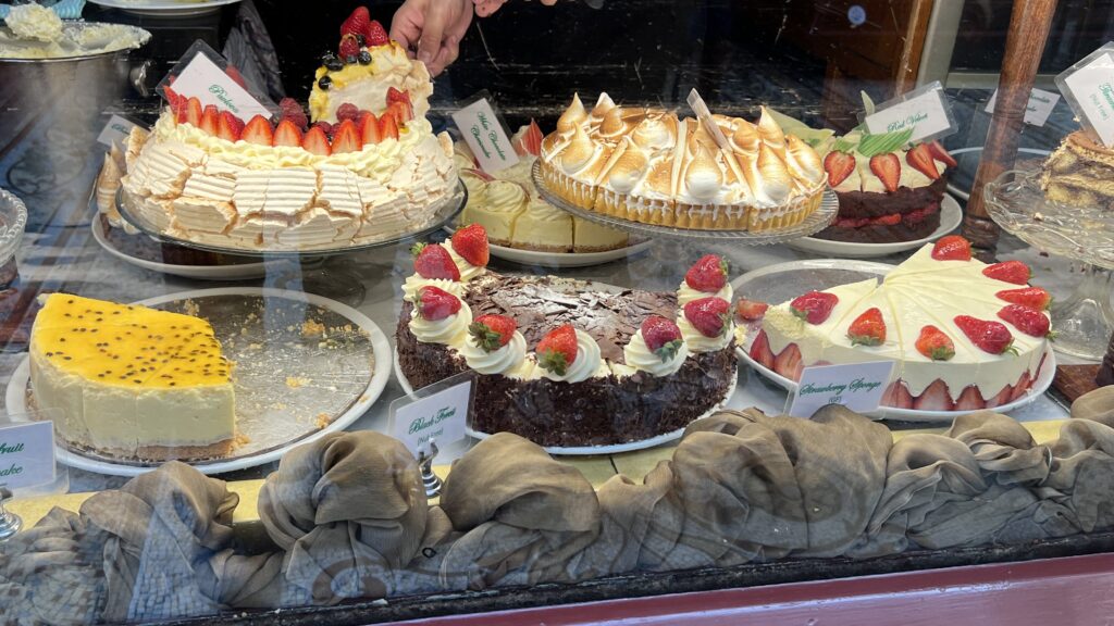 Besonders aufgefallen ist uns dabei das Schaufenster der Hopetoun Tearooms. Das Geschäft besteht seit 1894, die Ware im Schaufenster dagegen ist äußerst frisch. Wir können uns dem nicht ganz entziehen und müssen einfach einige kleine Kostproben mitnehmen… selbstverständlich nur zur Qualitätskontrolle 🤫.