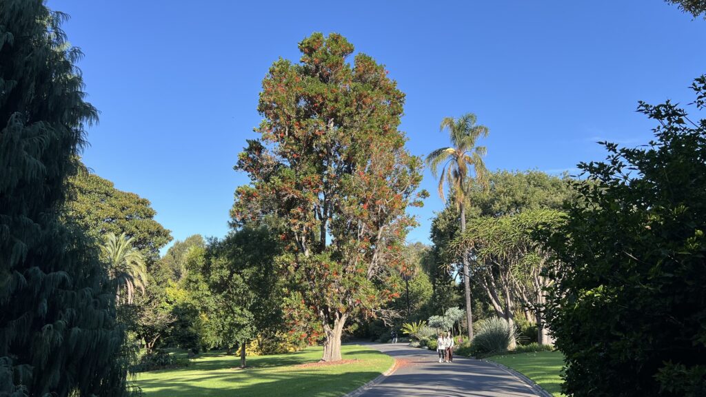 Am Nachmittag laufen wir zu den riesigen Parkanlagen der Kings Domain und der Botanical Gardens, die ineinander übergehen. Angelegt wurden sie Mitte des 19. Jahrhunderts, vieles davon auf Initiative des damaligen Direktors des Botanischen Gartens, dem Deutsch-Australier Baron Ferdinand von Mueller.