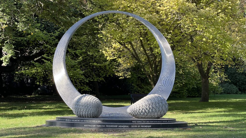 Als wir auf dem Rückweg sind, kommen wir am australisch-türkischen Freundschafts-denkmal vorbei. Es erinnert an die verlustreiche Schlacht von Gallipoli in der Türkei, bei der 1915 Truppen aus Australien, Neuseeland und Tonga beteiligt waren und den darauffolgenden Friedensschluss. Nach wie vor spielt dieser Teil des Ersten Weltkriegs eine wichtige Rolle in den genannten Ländern, wo jedes Jahr am 25. April der Toten gedacht wird.