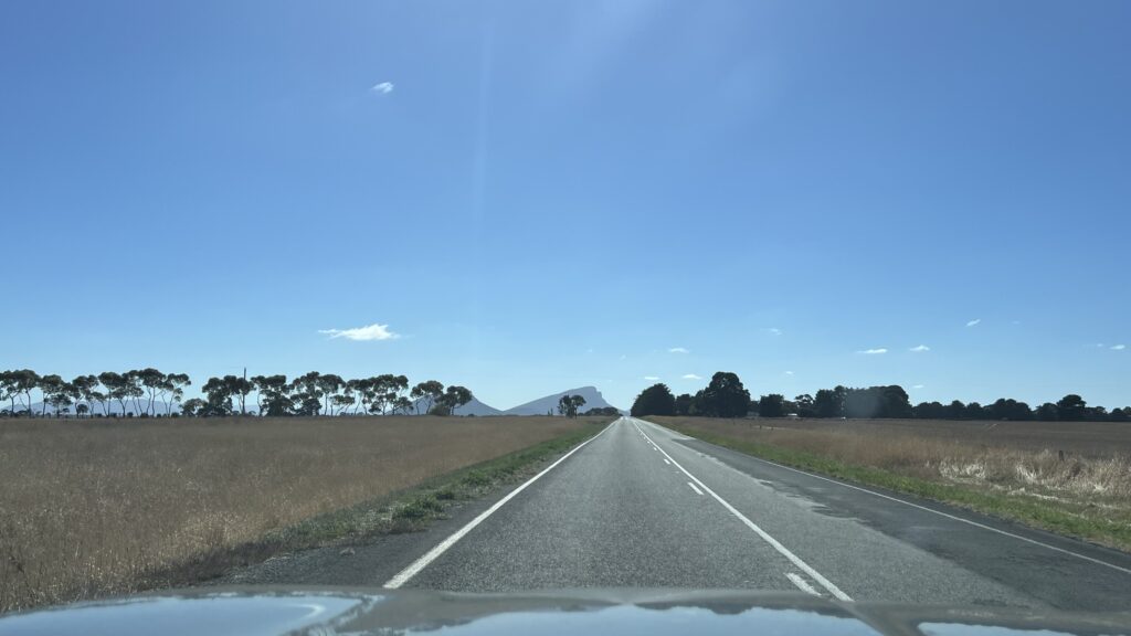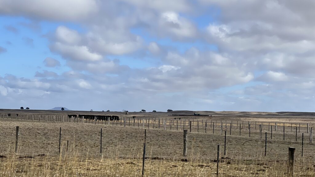 So kommen wir aber recht früh auf die Piste, unser Ziel ist Dunkeld am Rand des Grampians National Park. Nachdem wir – wie bereits erwähnt – bei Nullawarre die Great Ocean Road verlassen haben, durchfahren wir eine sehr eintönige Umgebung.