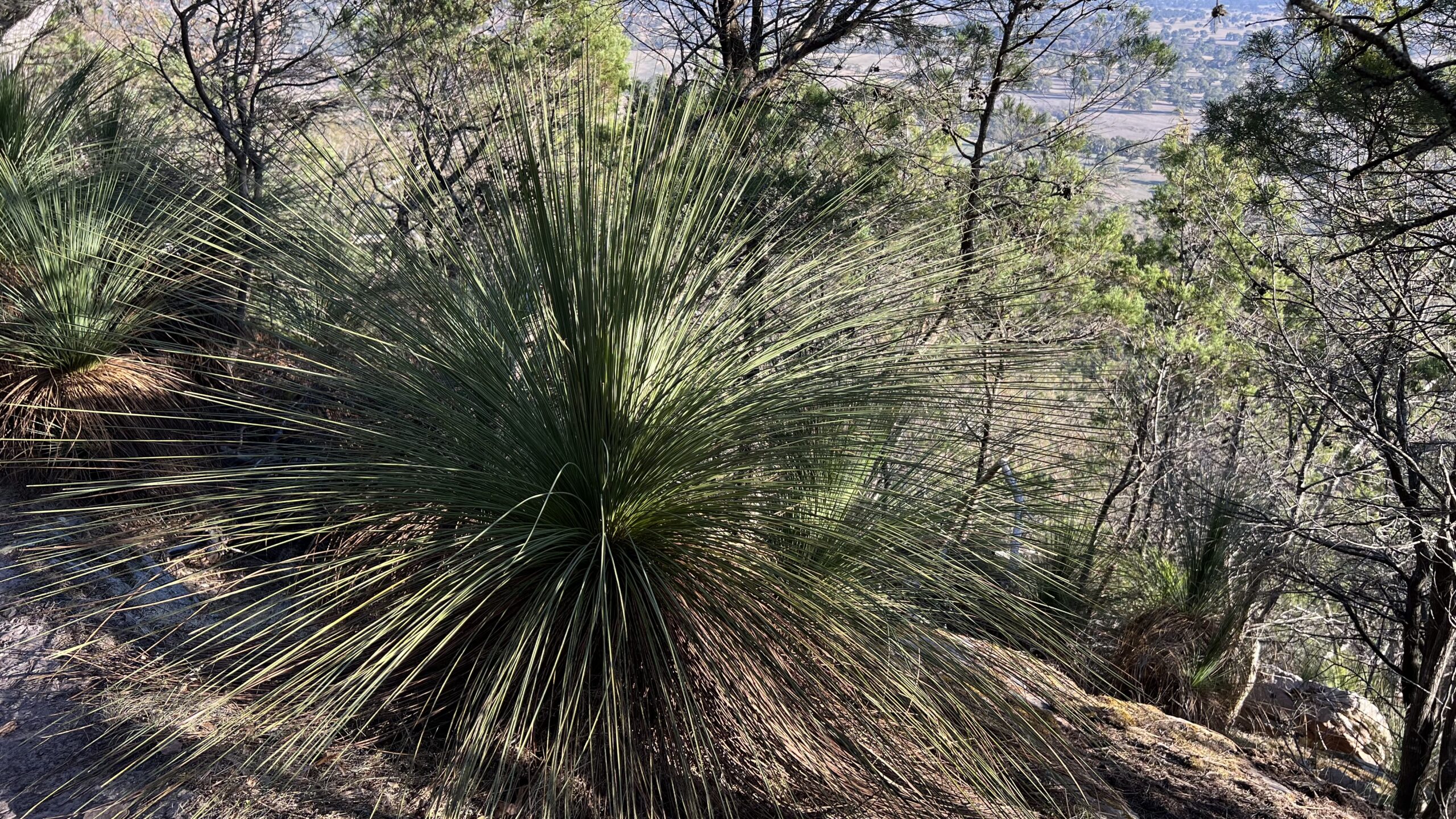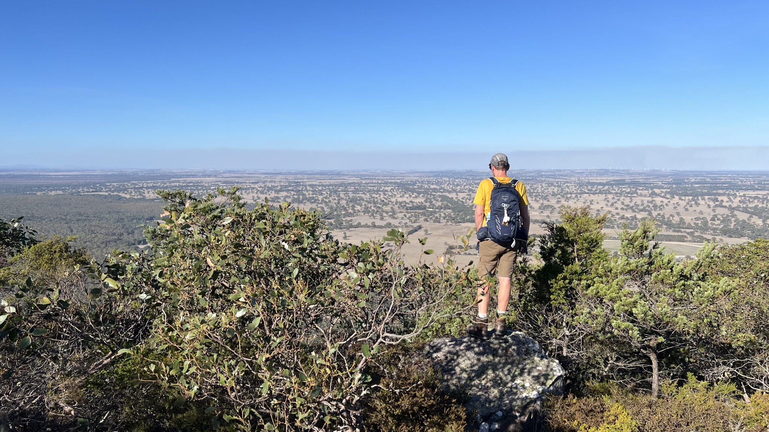 Die Rundtour ist recht schweißtreibend, belohnt uns aber mit herrlichen Ausblicken. Vom Gipfel auf 540 m Höhe hat man eine tolle Aussicht auf die gesamte Umgebung. Drei große Greifvögel, Keilschwanzadler, segeln im Aufwind in der Nähe der Felsen.