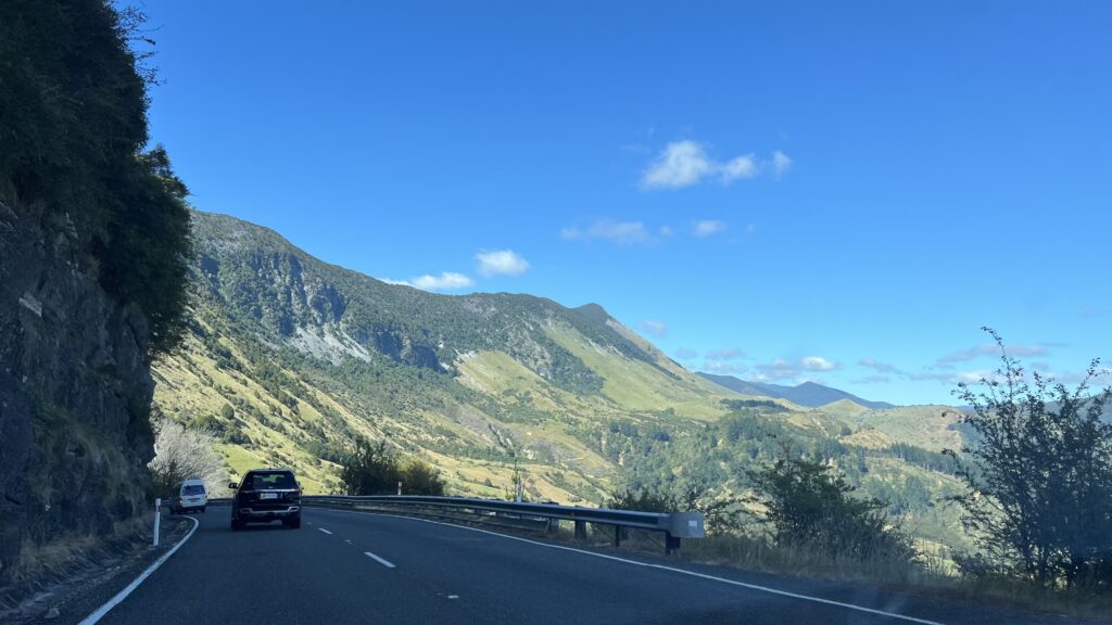 Für heute jedenfalls wollen wir ans Nordende der Südinsel fahren, das sind hin und zurück rund 230km. Zunächst müssen wir uns dabei über die Takaka Hills schleppen, die Passhöhe liegt immerhin auf 800m!