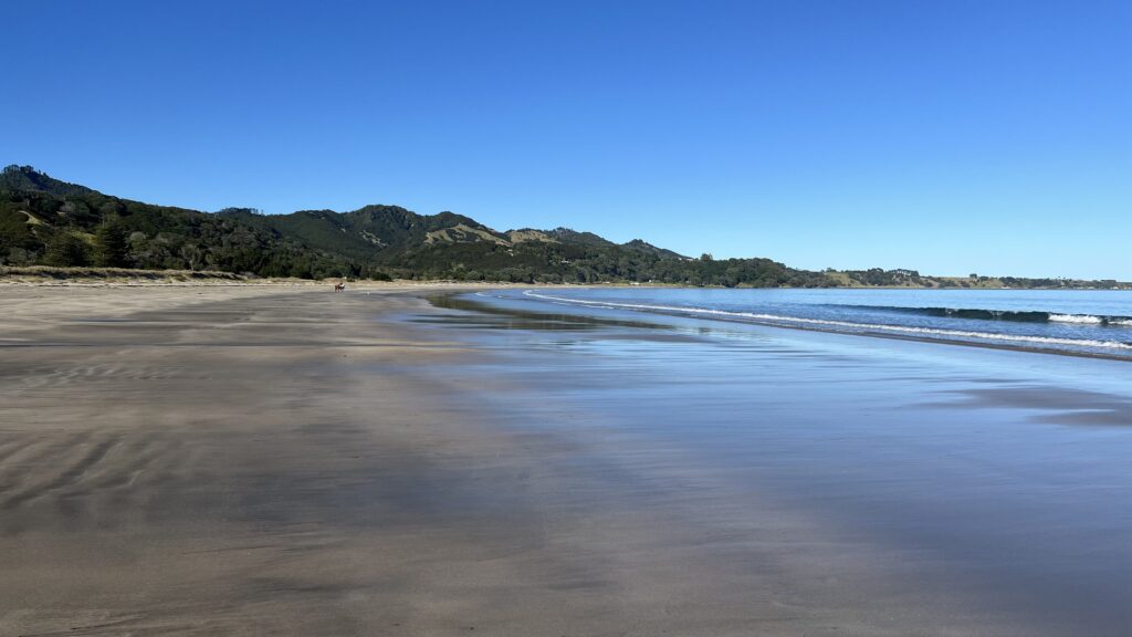 Dann kommen wir an der Bay of Plenty an, die mit vielen flachen Buchten und strahlend blauem Wasser lockt. Einer von uns kann der Versuchung nicht widerstehen und muss am nächstbesten Strand baden gehen. Schön ist‘s, sagt er… aber frisch!