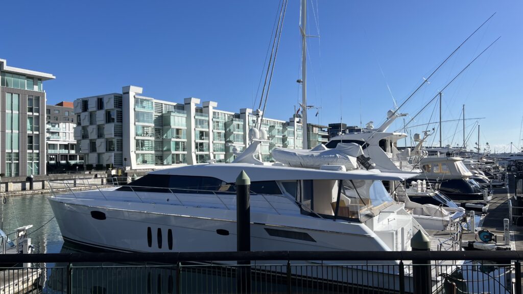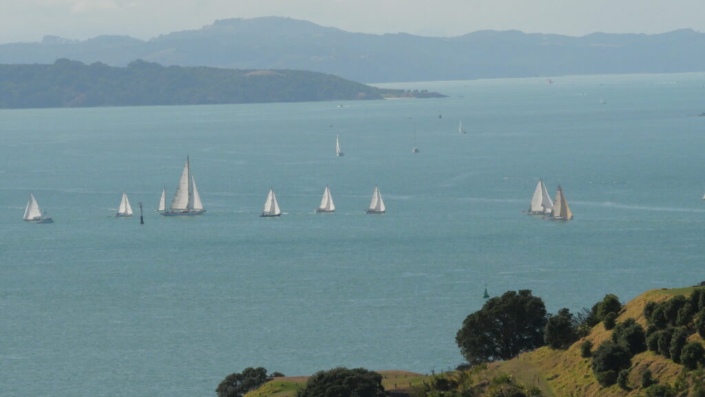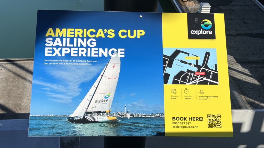 An unserem letzten Tag in Neuseeland nehmen wir eine der Hafenfähren, um überzusetzen nach Devonport, einem Stadtteil auf der anderen Seite der Bucht. Auf dem Weg zum Fähranleger kommen wir durch die Hafencity mit ihren Luxuswohnungen plus eigenem Liegeplatz für die Yacht… Außerdem kann man auf einem echten America’s Cup-Teilnehmer, einem Vollblut-Rennsegler, für zwei Stunden mitfahren. Alles machbar gegen Einwurf von Münzen.