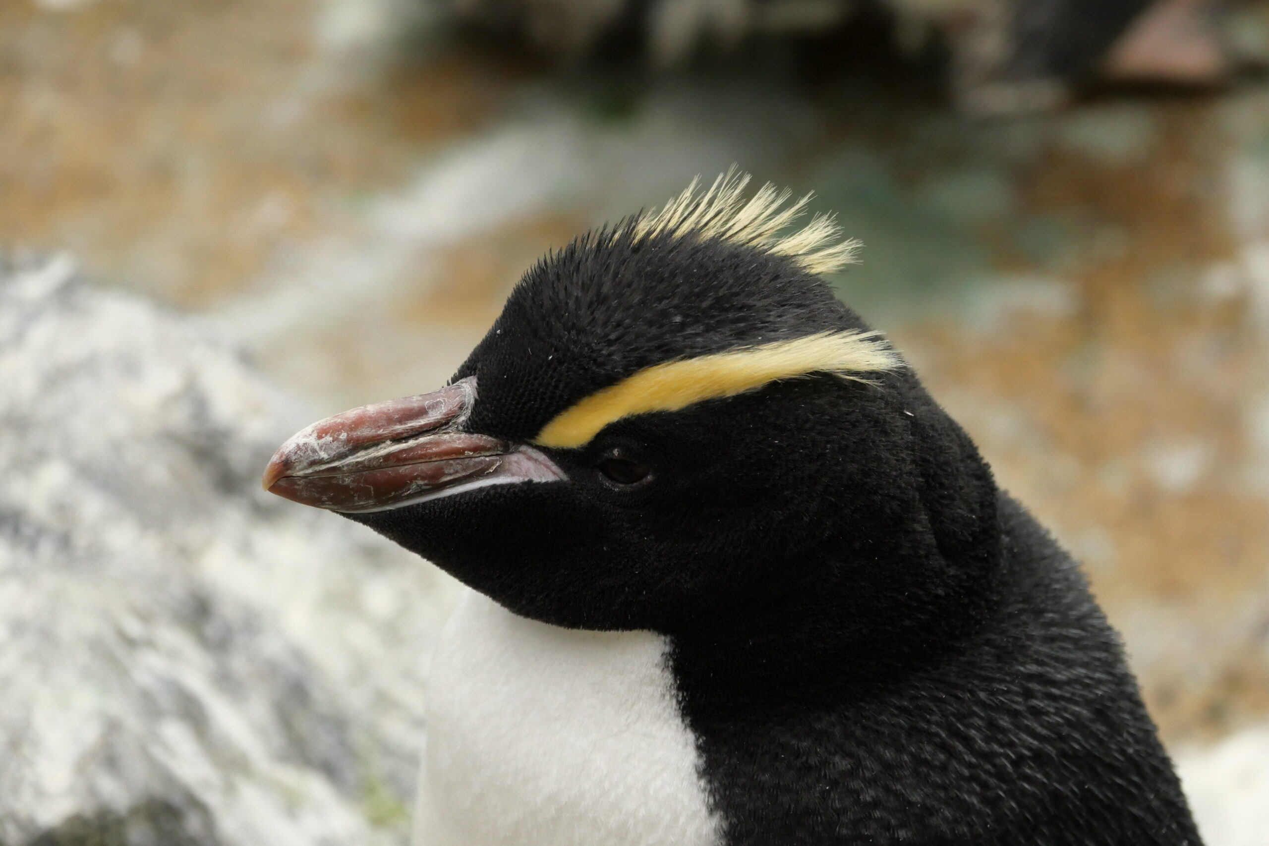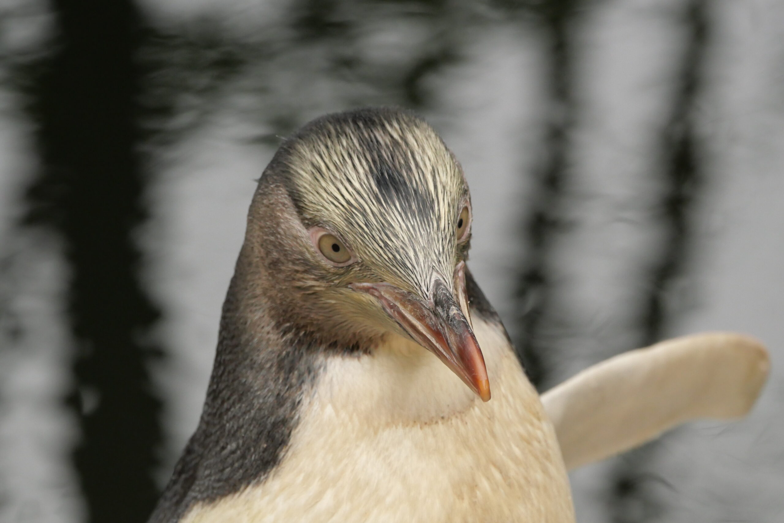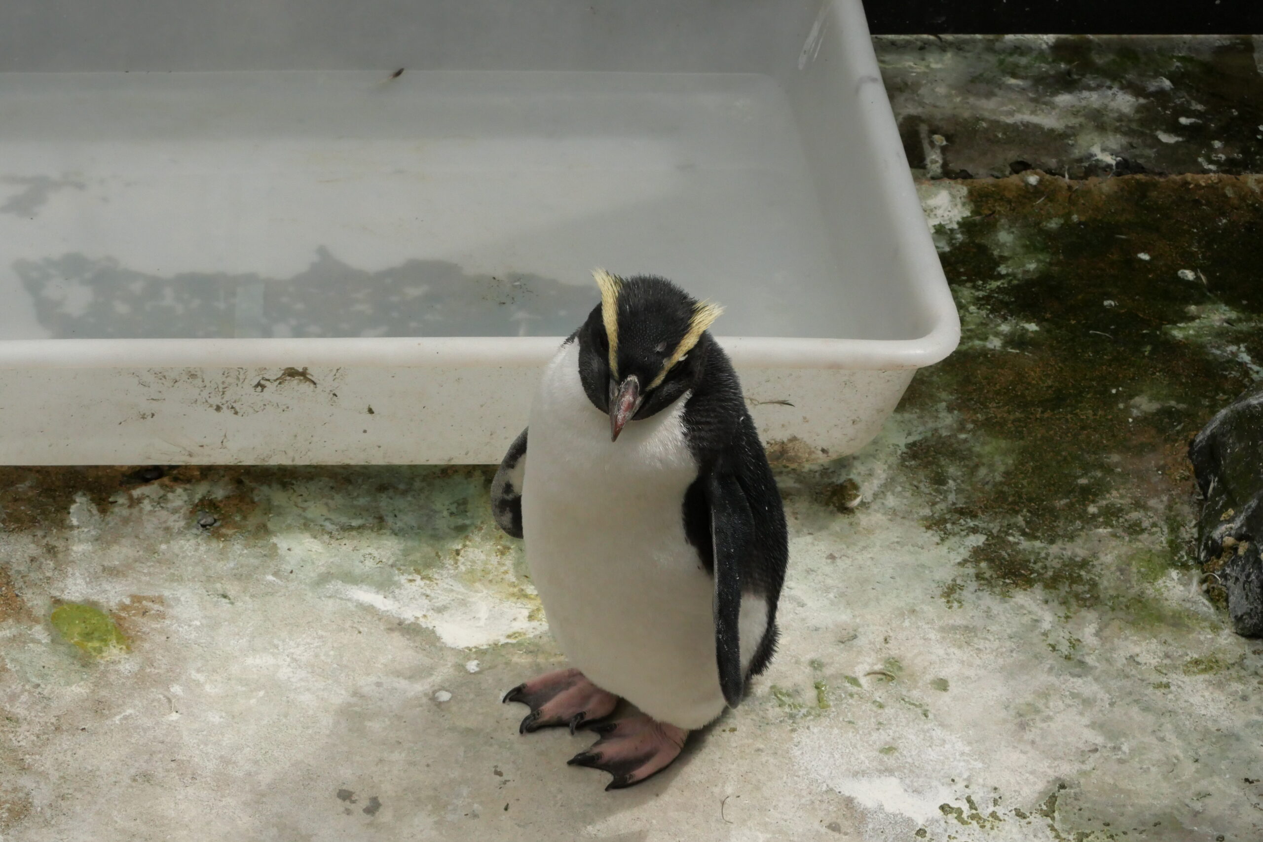 Später sehen wir noch einige jüngere Exemplare dieser Art in der Aufzuchtstation. Deutlich erkennbar sind jedenfalls die namensgebenden gelben Augen. Nebenan werden einige Dickschnabel-Pinguine aufgepäppelt, die ebenfalls nur auf Neuseeland vorkommen, und lustige Frisuren haben 😉.
