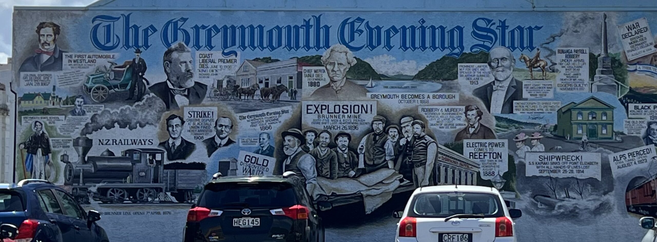 Greymouth ist die nächste Stadt an der Strecke und Zentrum der Provinz West Coast. Kohle- und Goldfunde spielten eine wichtige Rolle, z.T. bis in die heutige Zeit, ein Denkmal für die bei Grubenunglücken verstorbenen Arbeiter erinnert daran.