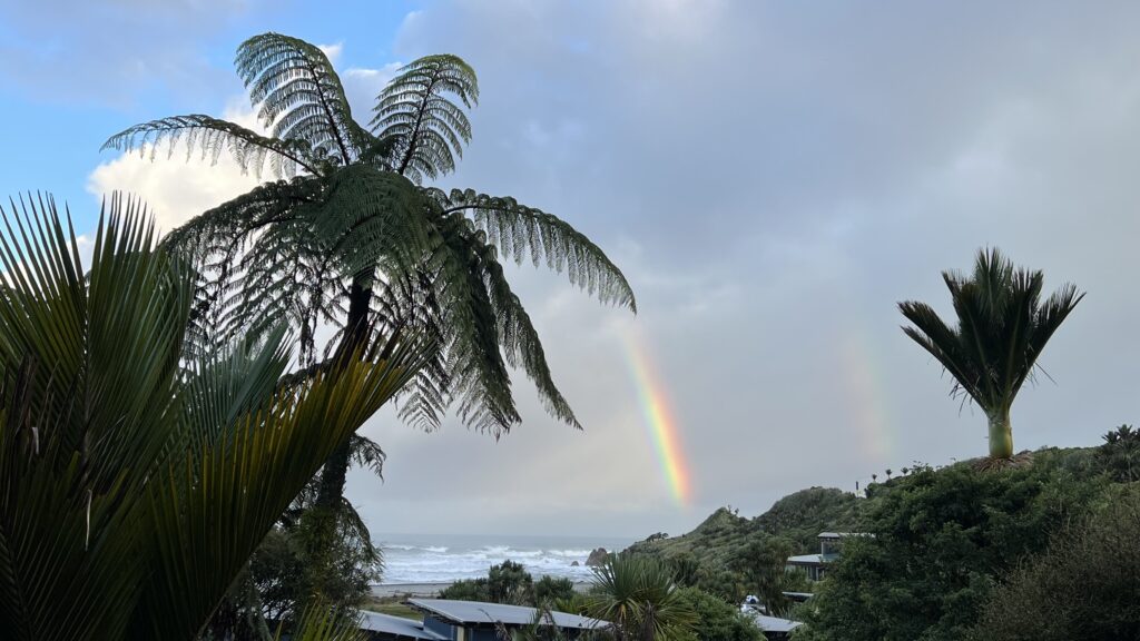 Nachdem wir morgens nach dem üblichen Morgenregen (inklusive Regenbogen) ein paar Einkäufe erledigt haben, rüsten wir uns für eine Wanderung. Es gibt nämlich sogar eine Möglichkeit, bei der wir das Auto für heute stehen lassen können, sehr gut!