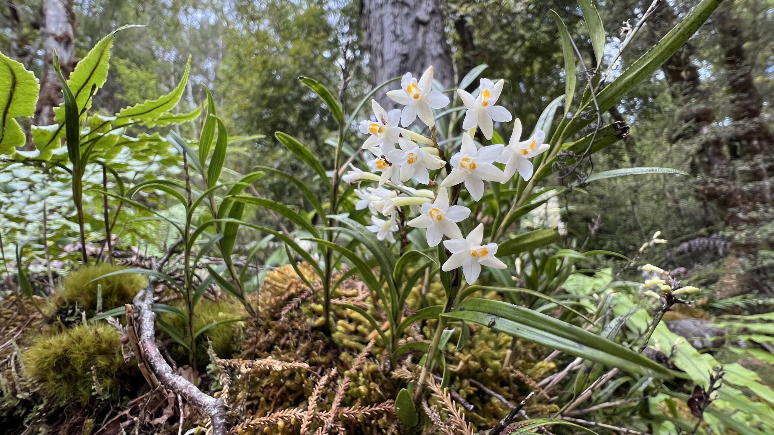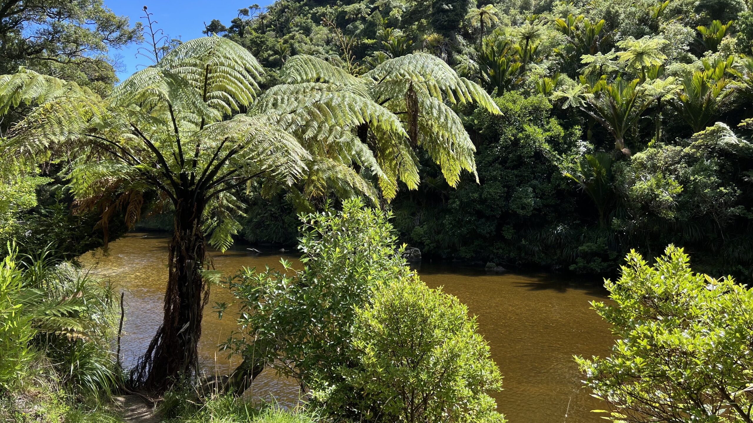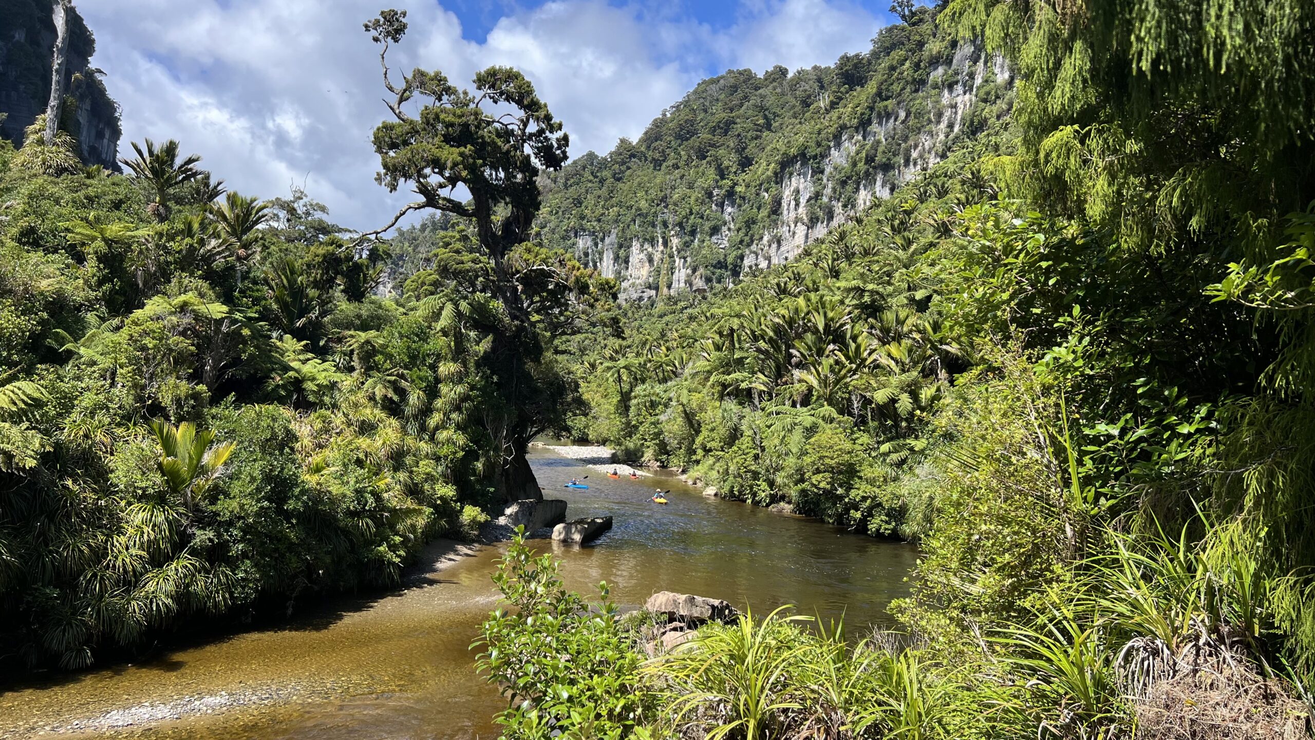 Im Wasser des Flusses sind Forellen und große Aale zu sehen, einige Kanufahrer setzen markante Farbkleckse ins Bild, es ist einfach schön hier! Tiefer im Wald begegnen uns mehrfach Wekarallen mit Küken. Ein Büschel der hier endemischen Osterorchidee fällt durch die kleinen weißen Blüten, aber auch ihren zarten Duft auf.