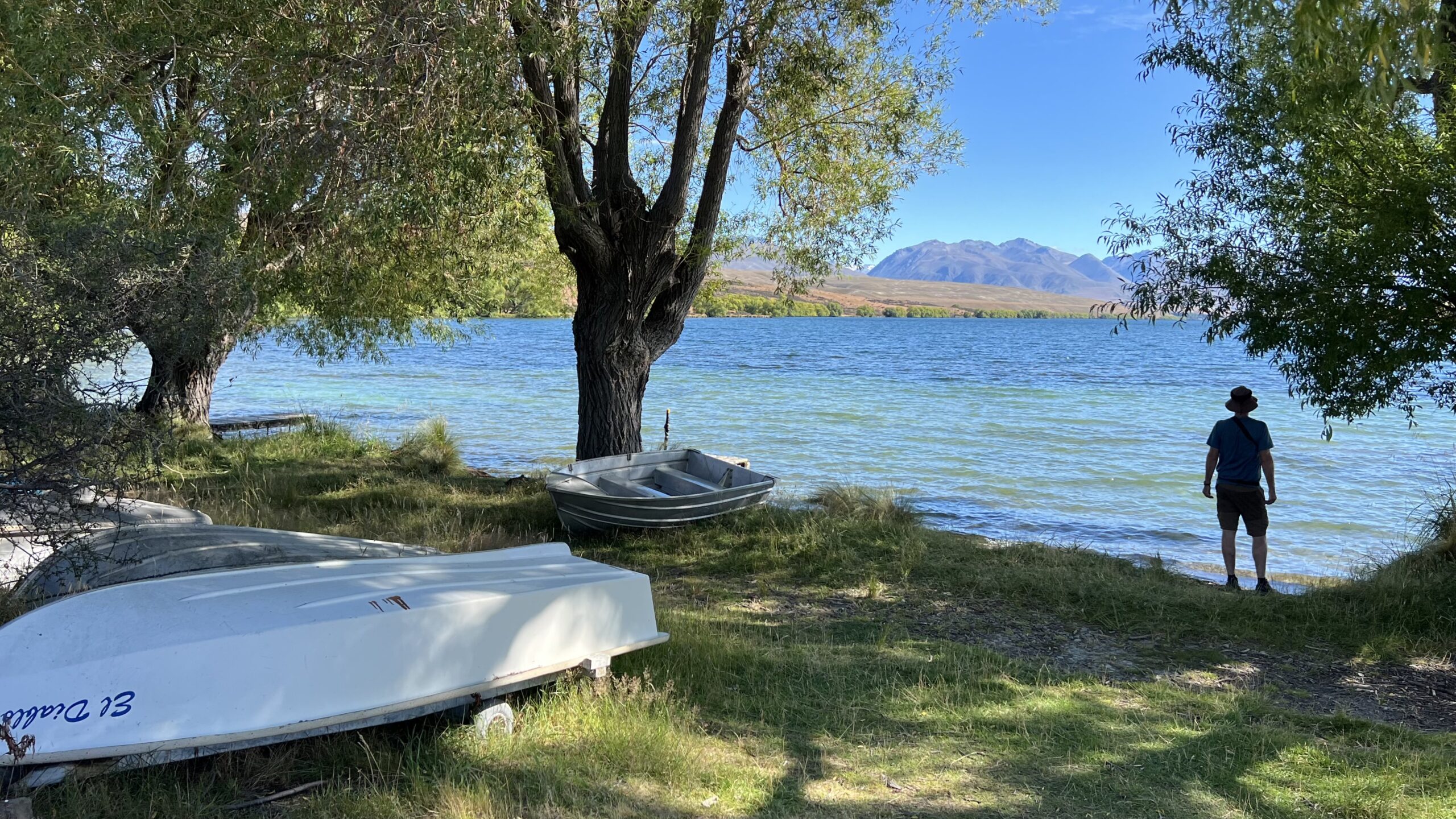 Auf dem Rückweg treffen wir einen lokalen Guide, der zwei Gäste zu einem Angeltrip begleitet. Von ihm erfahren wir, dass der ganze See unter Schutz steht und die Campingplätze nur wenige feste Hütten erlauben. Der Fischreichtum zieht wohl Angler an, viele Fallen in Ufernähe sollen die Zahl der kleinen Räuber (Fuchskusu, Katze, Ratte, andere Possums etc.) dezimieren zum Schutz der Wasservögel. Ein kleines blaues Paradies, finden wir!