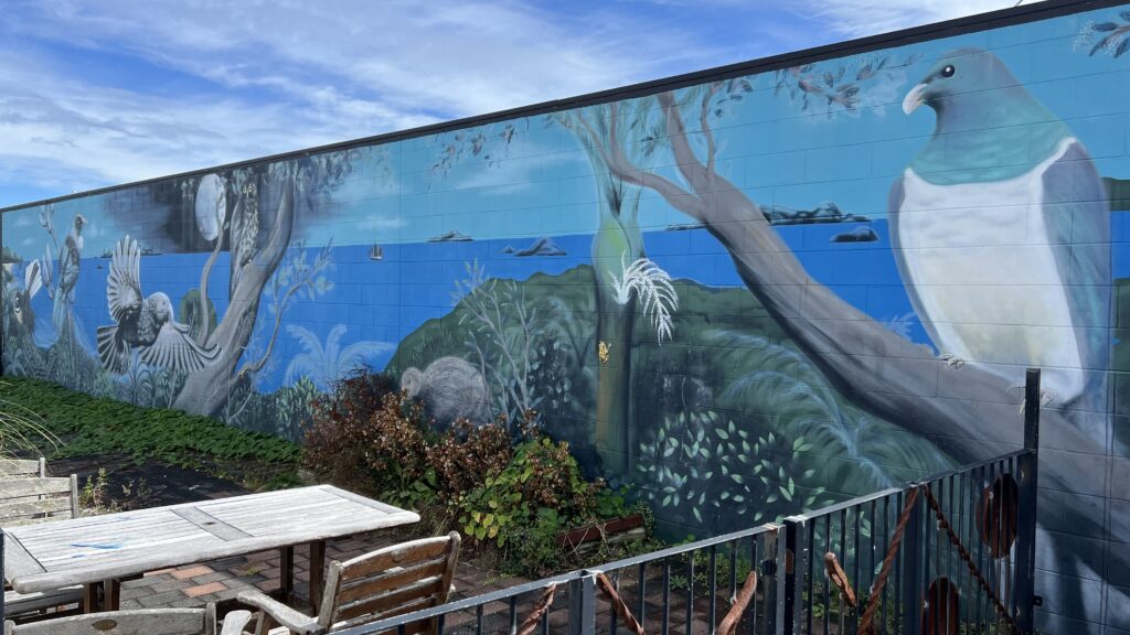 Auf der Weiterfahrt halten wir in Coromandel an, das sich als charmantes Städtchen präsentiert mit einigen Cafés, Künstlergalerien und Läden für alles mögliche. Auch hier wieder mal schöne Fassadengemälde!
