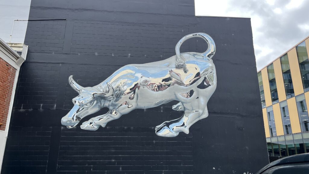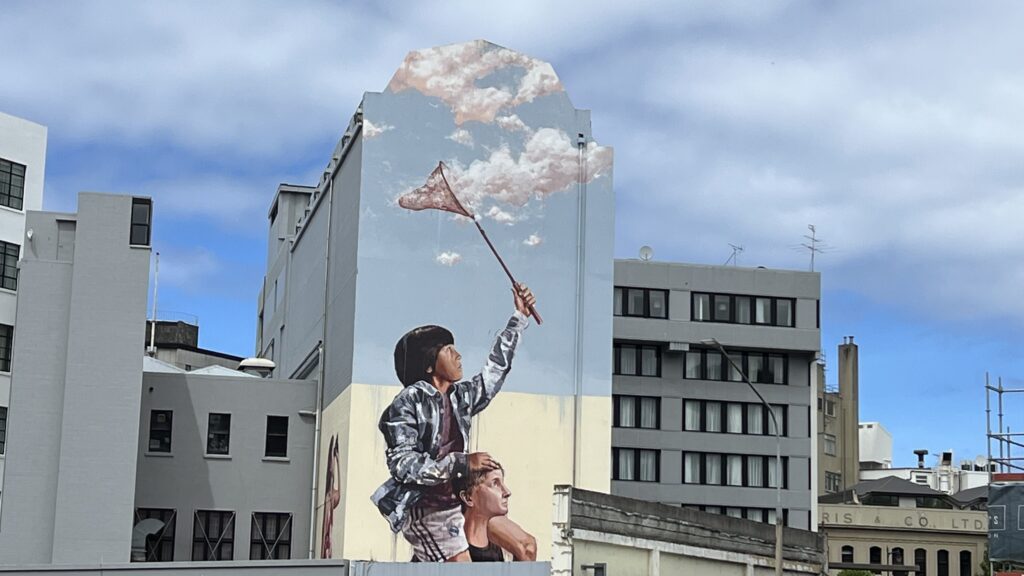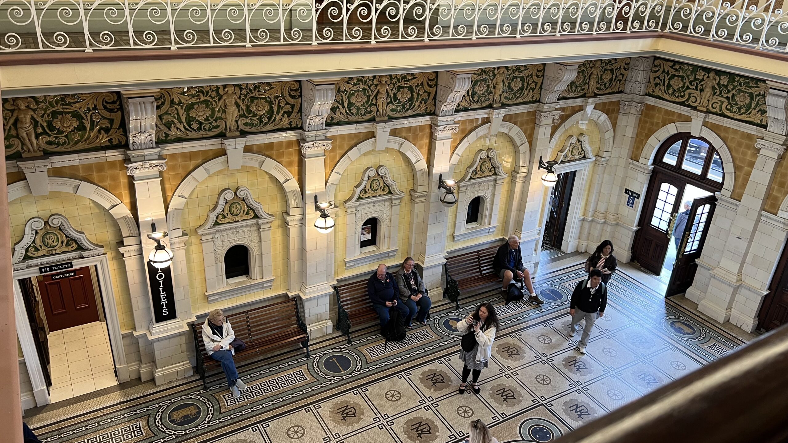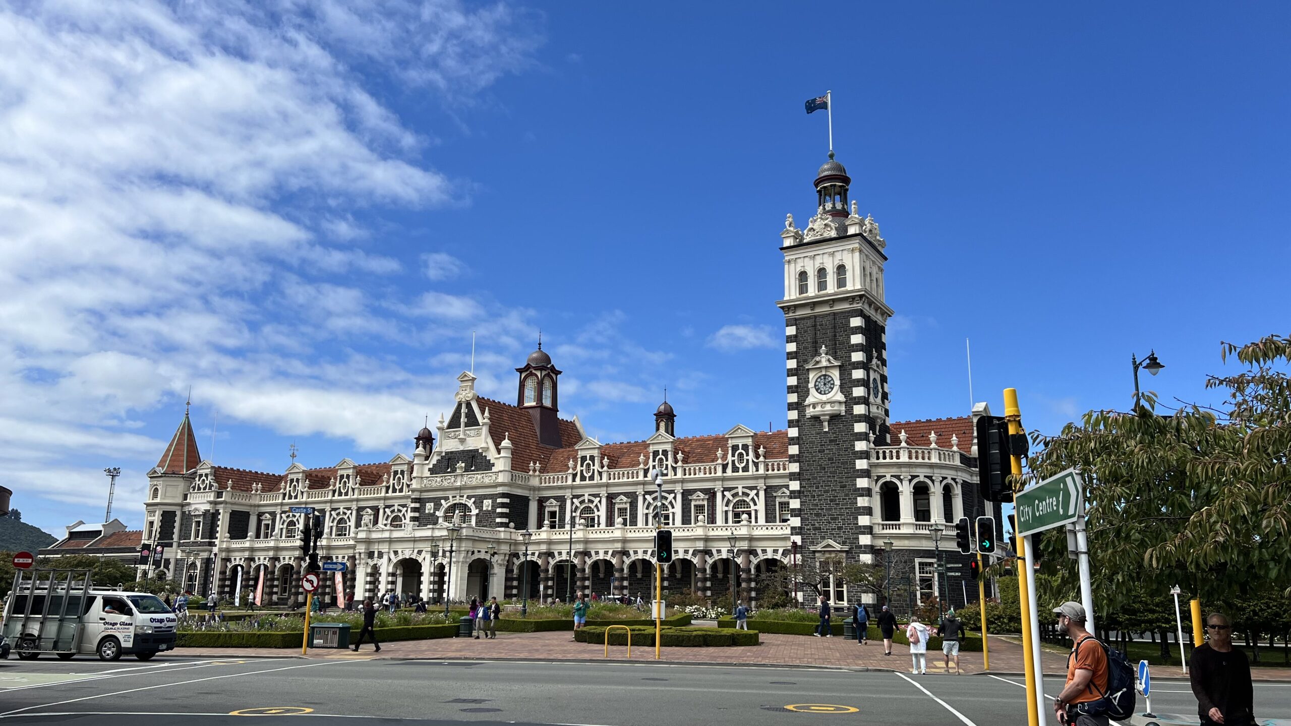 Über Mittag fahren wir ins Zentrum, um dort eine Art Stadtrundgang zu machen. Dunedin ist der gälische Name für Edinburgh, hier wollten ab 1848 überwiegend schottische Siedler eine neue Heimat errichten. Der zentrale Punkt der Stadt ist das Oktagon mit den im Achteck verlaufenden Straßen. Dort besuchen wir als erstes die Public Art Gallery, eines der bedeutendsten Kunstmuseen des Landes mit einer bunten Mischung an Exponaten. Gerade gibt es eine Sonderausstellung einer jungen neuseeländischen Künstlerin, Xoe Hall, mit sehr poppigen (Wand-)Bildern. Und der Eintritt ist wieder mal frei!
