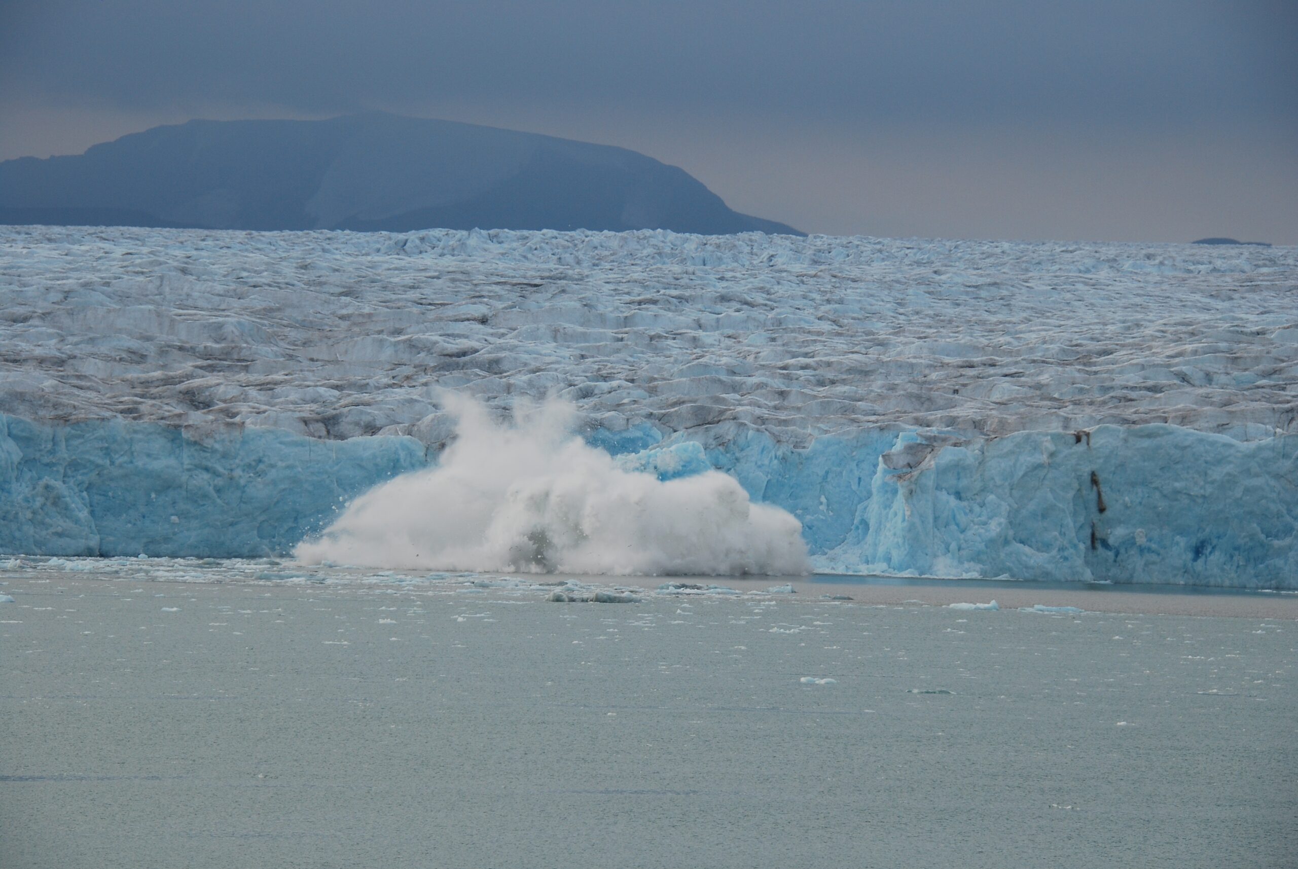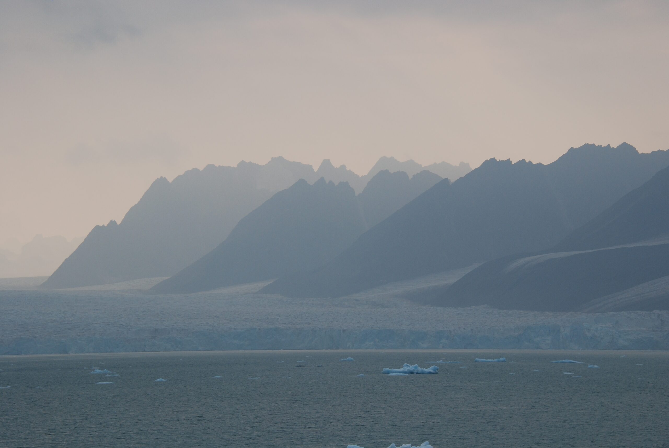 Geankert wird im Liefdefjord, an dessen Ende sich gleich drei breite Gletscher ins Meer ergießen. Wir frühstücken nur etwas leichtes, denn kurz danach müssen wir uns präparieren für eine Kayaktour zum Monacobreen, dem größten der drei Gletscher – diesmal sind wir mit von der Partie! Gestern Abend haben wir schon die Ausrüstung dafür bekommen, nun will alles ordnungsgemäß angezogen werden… garnicht so einfach. Wie zwei Michelinmännchen stapfen wir hinunter zum Tender Pit (so heißt der Platz im Schiff, von wo aus man hinaus und wieder hinein kommt). Alles ist super organisiert, mehrere Mitarbeiter des Exkursionsteams stehen uns zur Seite und kontrollieren die Abläufe, zwei Guides begleiten die Kayakgruppe.