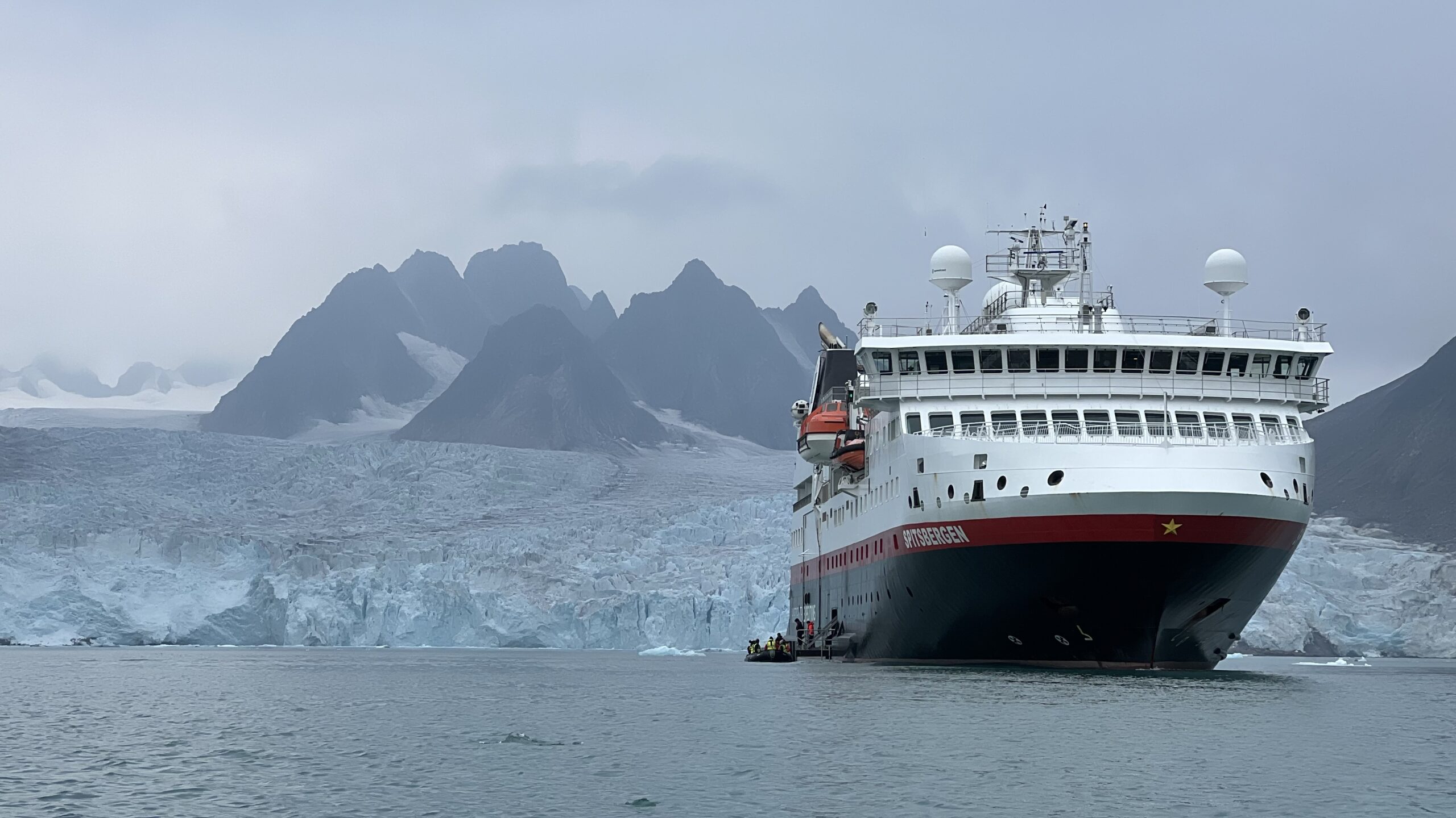 Etwas später heißt es wieder in eins der Zodiacs steigen, wir werden zu Hobbyforschern. Es geht um das Forschungsprojekt „eDNA“ der Uni Bergen, zu dem wir als Citizen Scientists einen Beitrag leisten. Hierfür werden mit einem Spezialbehälter Wasserproben aus einer Tiefe von 25 m entnommen. Bei einer späteren Untersuchung erlauben die darin enthaltenen tierischen DNA-Spuren Rückschlüsse auf die verschiedenen Spezies (Stichwort Artensterben). Für ein weiteres Thema versenken wir eine Messsonde bis zu einer Tiefe von 55 m im Wasser, die Daten erhebt für Temperatur, Salzgehalt, Druck sowie Chlorophyllanteil. Dies dient der Beobachtung und Dokumentation der Gletscherschmelze, die überall deutlich sichtbar ist.