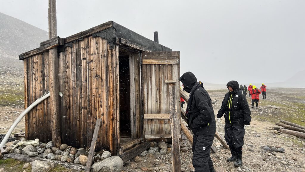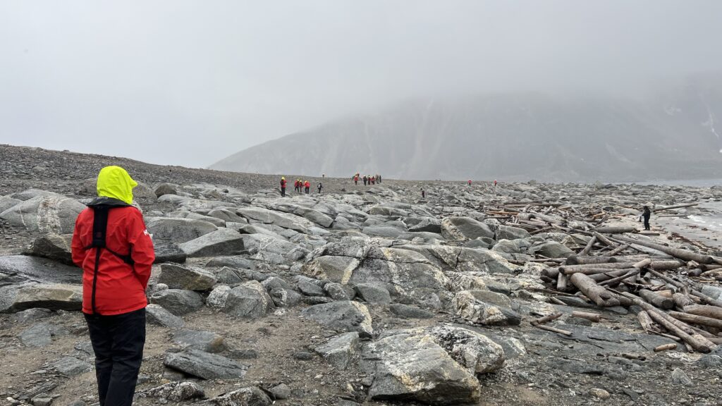 Heute lässt das Wetter keinen Zweifel mehr daran, dass wir mittlerweile nördlich des 80. Breitengrades unterwegs sind: bei gerade mal 2 Grad weht ein rauher Wind, der Schneeregen mitbringt. Man könnte das als nasskaltes Mistwetter bezeichnen… nun ja, Jacuzzi und Sauna können mich darüber ein Stück weit hinwegtrösten.
