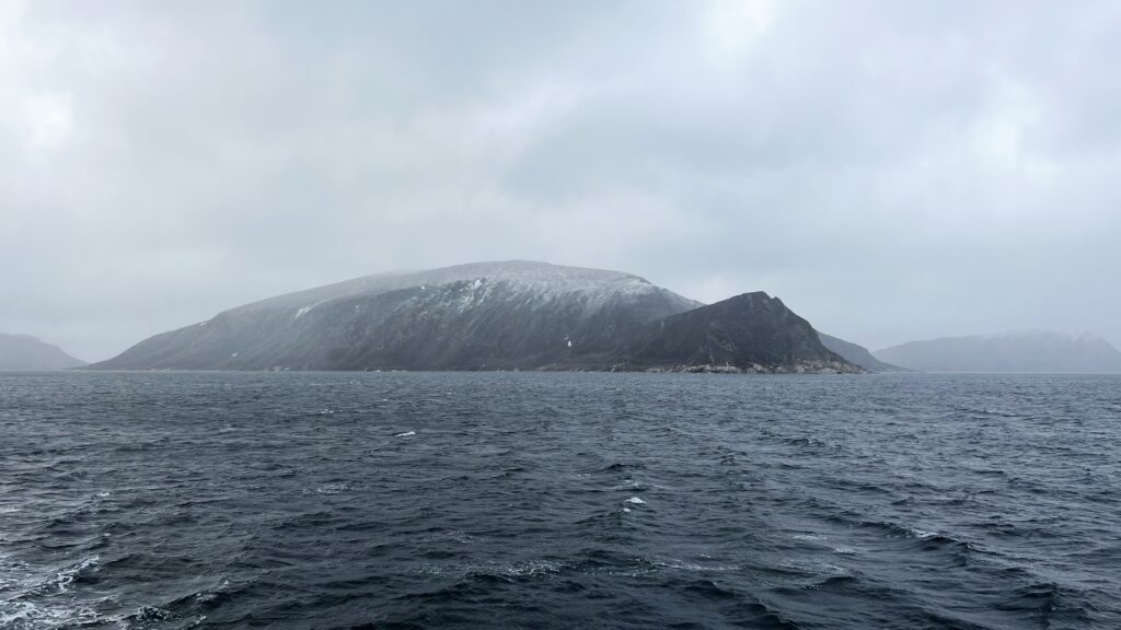 Morgens setzen wir bei etwas ruppiger See mit den Zodiacs über nach Chermsideoya. Dies ist einer der nördlichsten Flecken auf der norwegischen Landkarte. Hier befindet sich auch das „echte“ Nordkapp, etwa 1050 km weiter im Norden als das allgemein bekannte. Die Erkundung der kleinen Bucht fällt eher kurz aus angesichts des ungemütlichen Wetters.